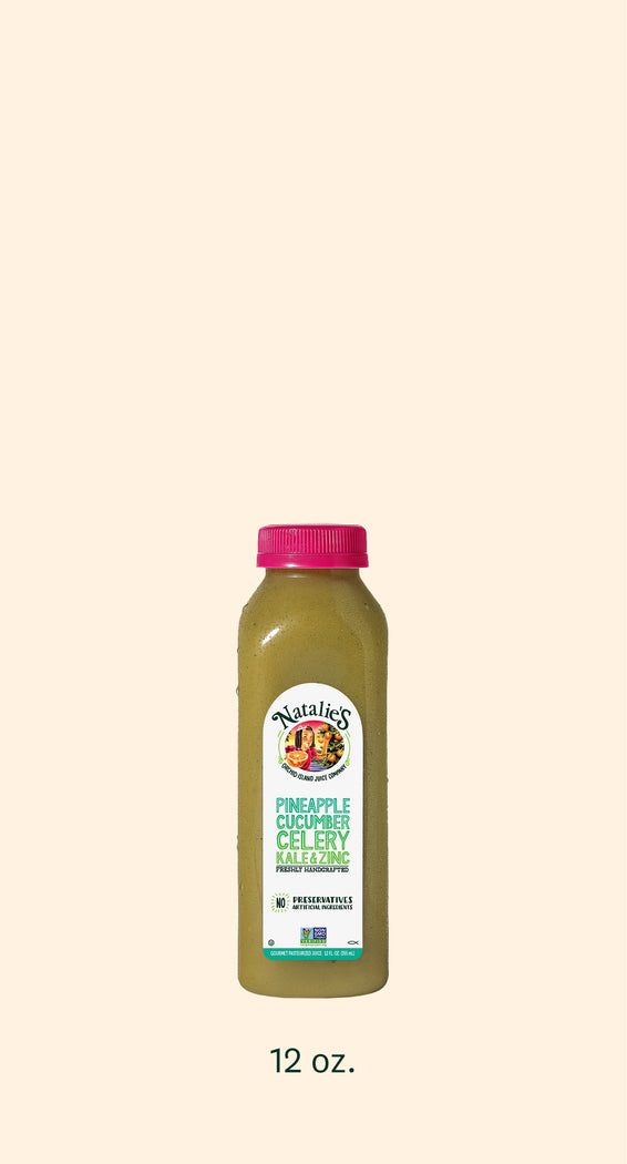 Skip the blender and crack into a crisp, refreshing bottle of Pineapple Kale Zinc Juice. Sip into sweet, golden pineapples with all the goodness of greens like cucumbers and kale. No preservatives, artificial ingredients, added sugars, or GMOs.